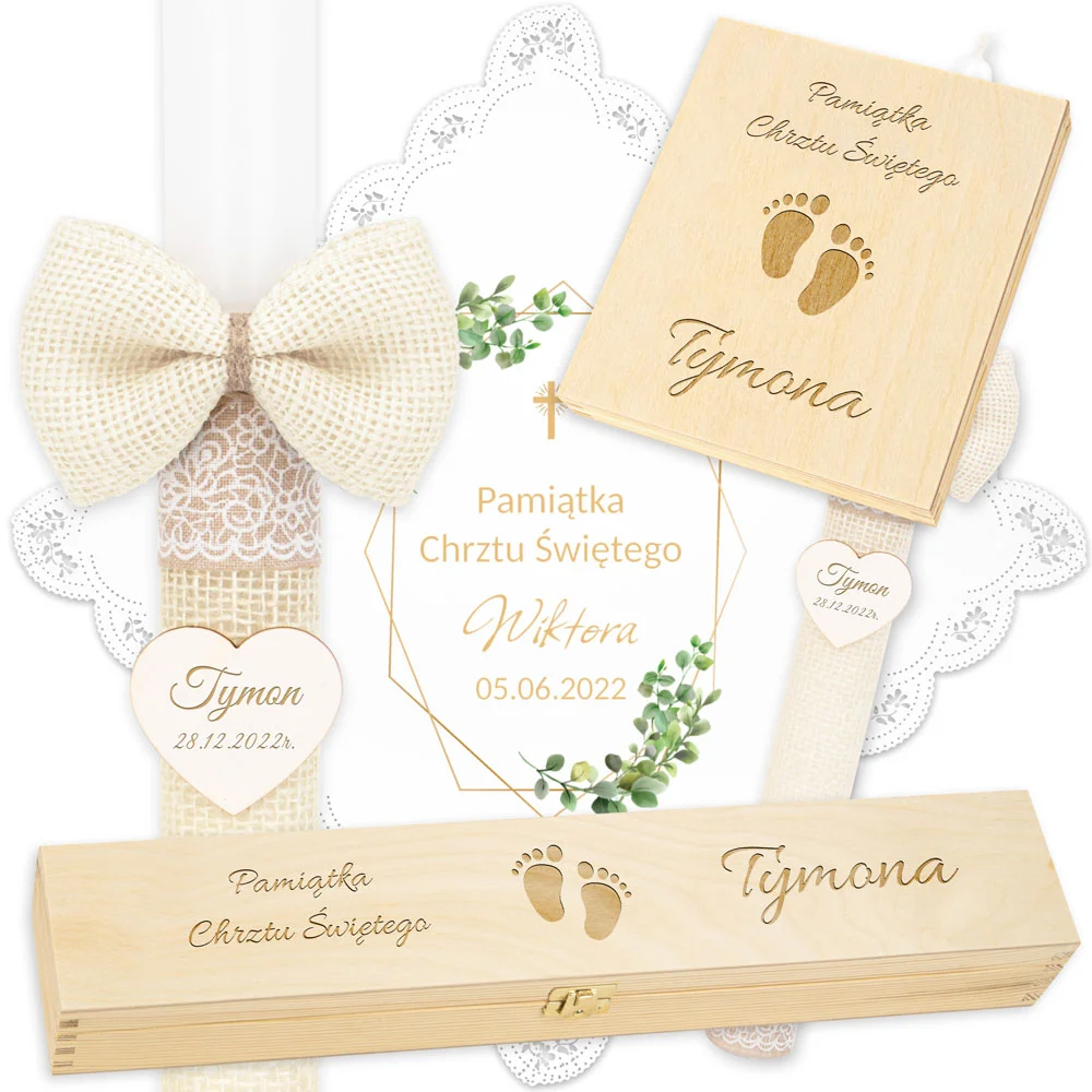 Świeca, Szatka i 2 Pudełka do Chrztu C4SW5P11/11SZ3