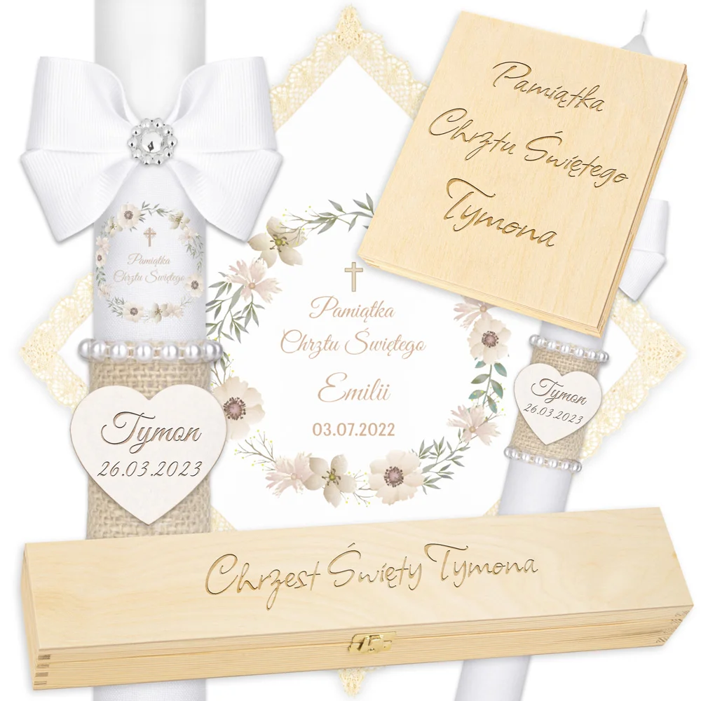 Świeca, Szatka i 2 Pudełka do Chrztu C7S12P11/10SZ2