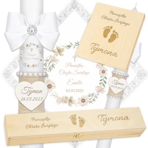 Świeca, Szatka i 2 Pudełka do Chrztu C7SB12P11/11SZ3