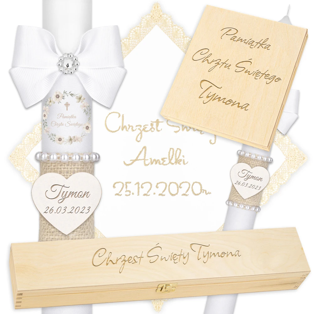 Świeca, Szatka i 2 Pudełka do Chrztu C7SH8P11/10SZ2