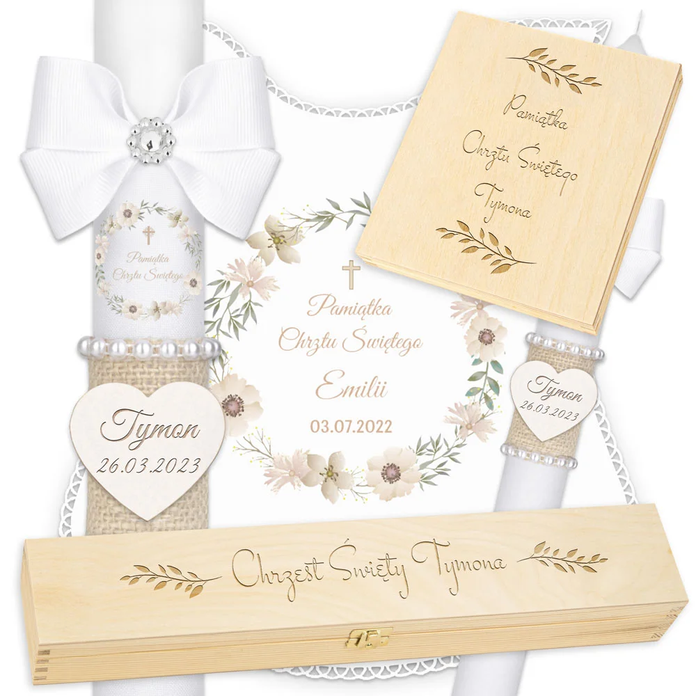 Świeca, Szatka i 2 Pudełka do Chrztu C7SS12P11/9SZ1