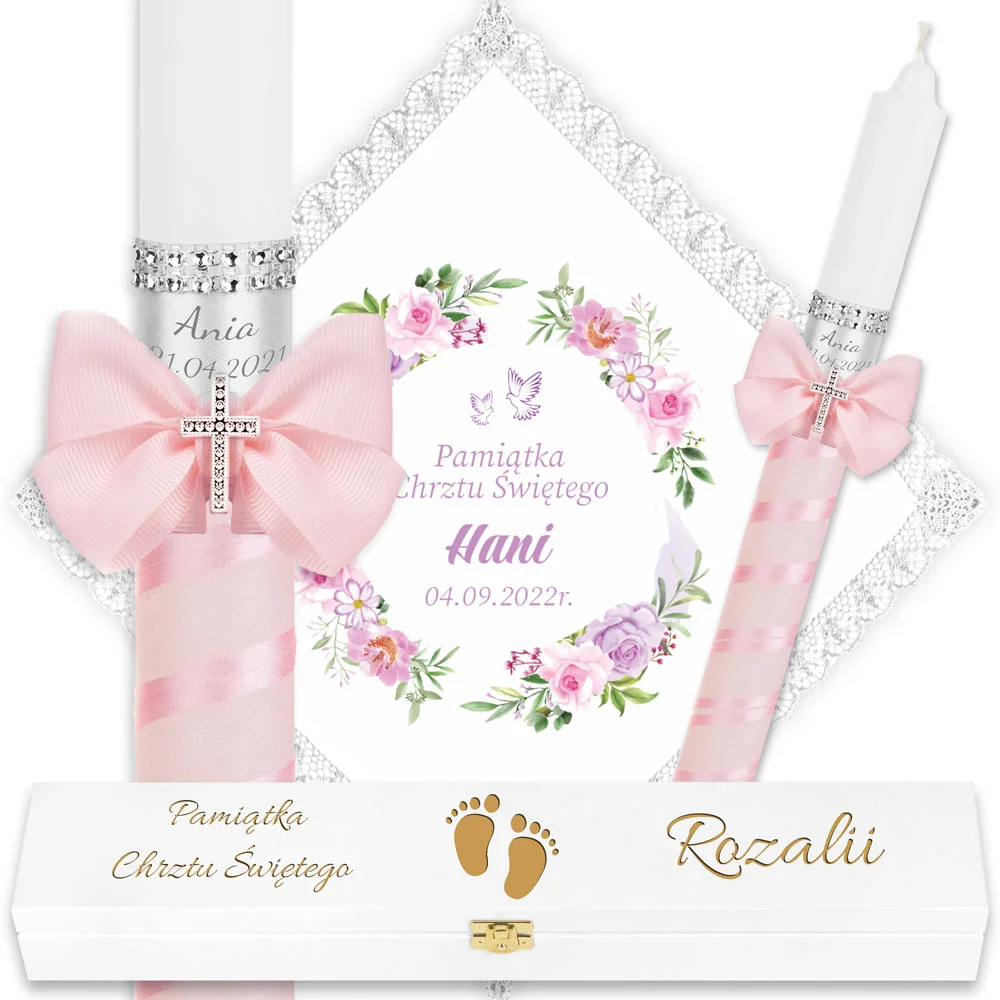 ✅ świeca na chrzest wraz z personalizacją (imieniem dziecka i datą chrztu),