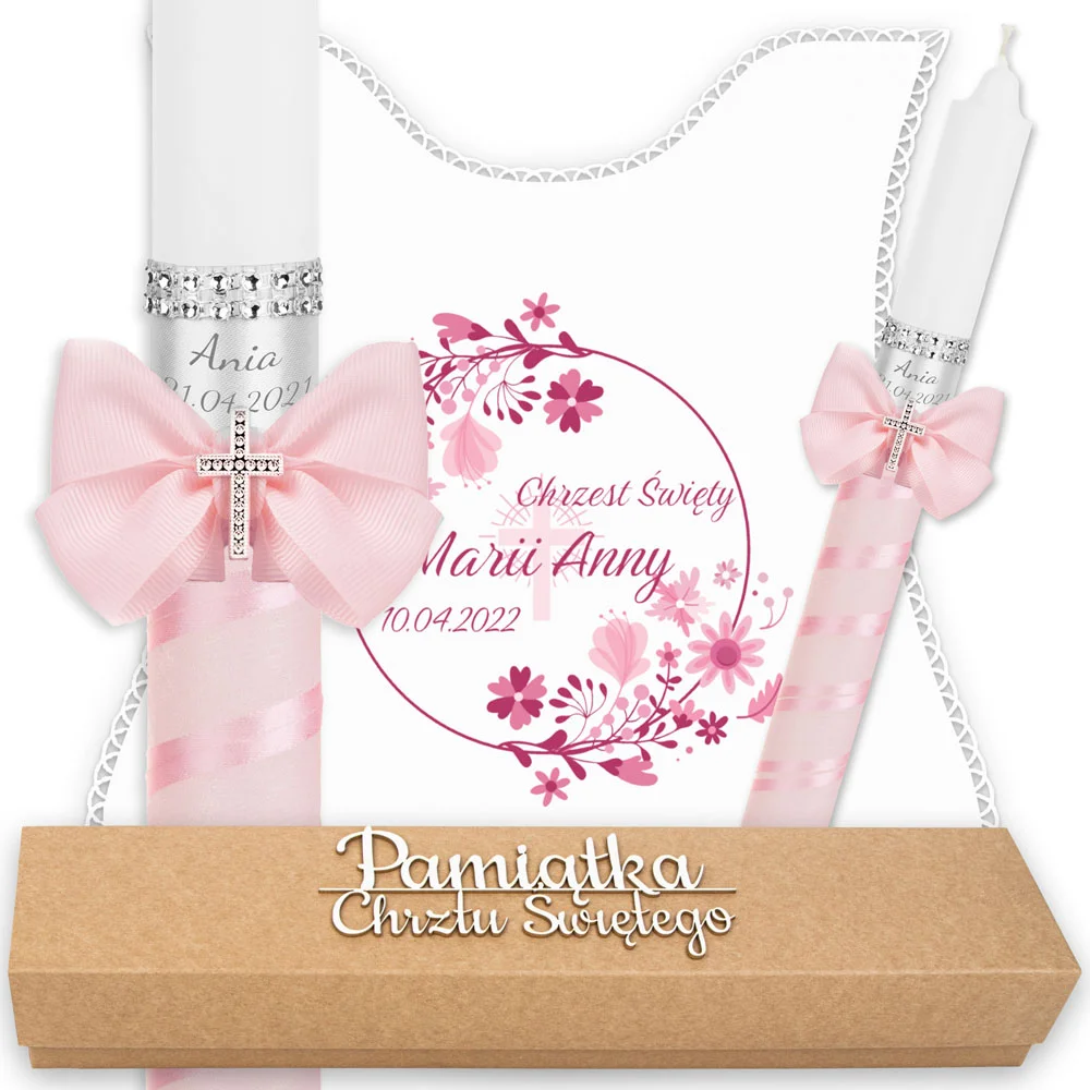 ✅ personalizacja (imię oraz data chrztu) na świecy oraz szatce.