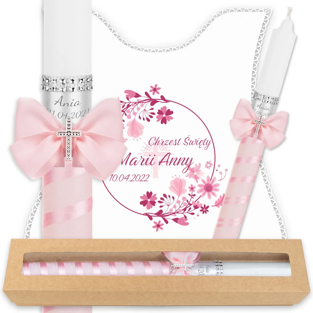✅ personalizacja (imię oraz data chrztu) na świecy oraz szatce.