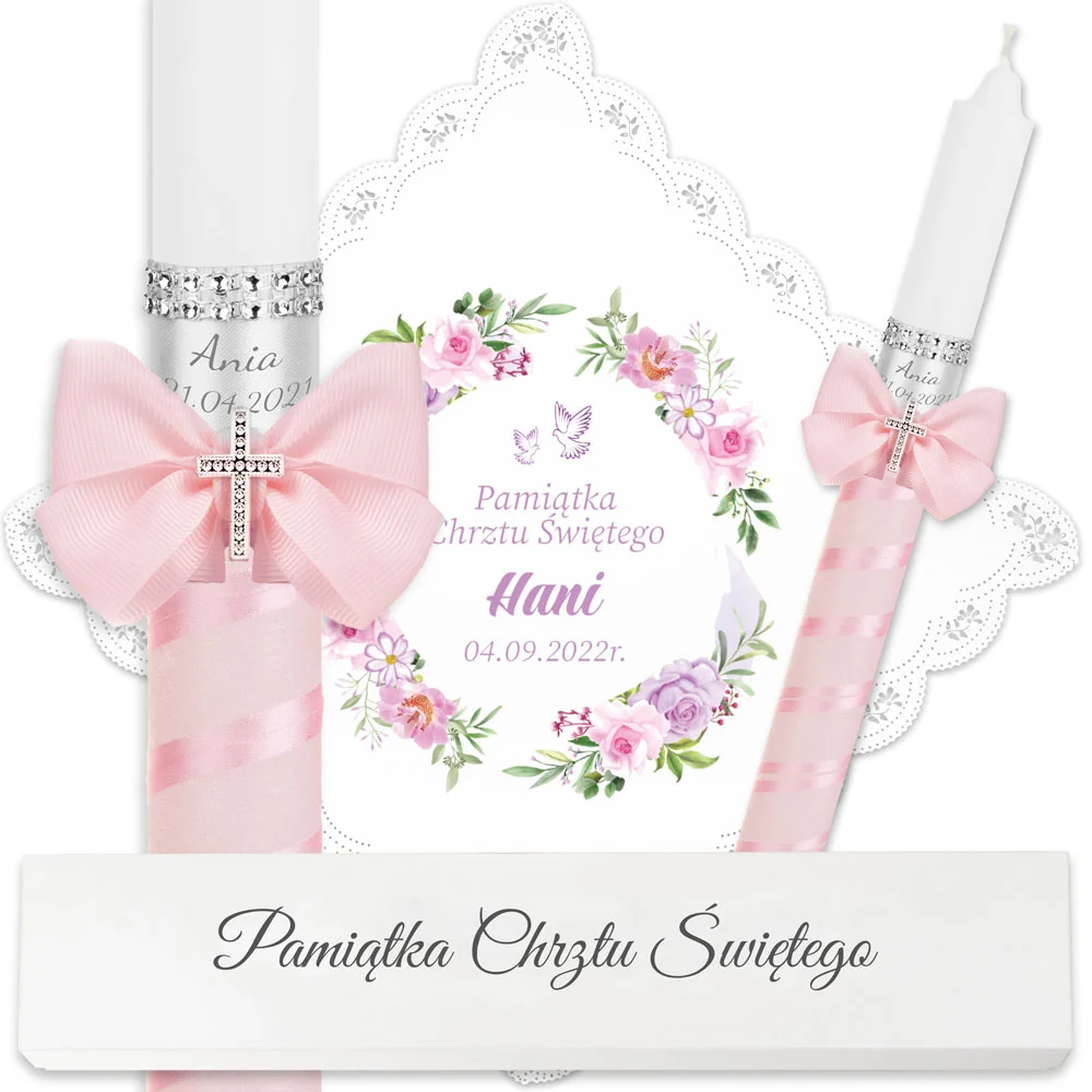 ✅ świeca na chrzest wraz z personalizacją (imieniem dziecka i datą chrztu),