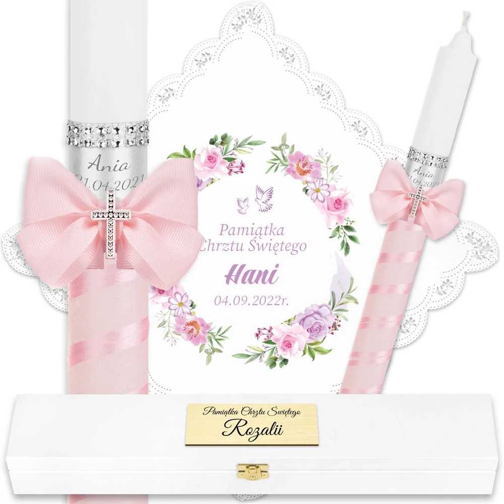 ✅ świeca na chrzest wraz z personalizacją (imieniem dziecka i datą chrztu),