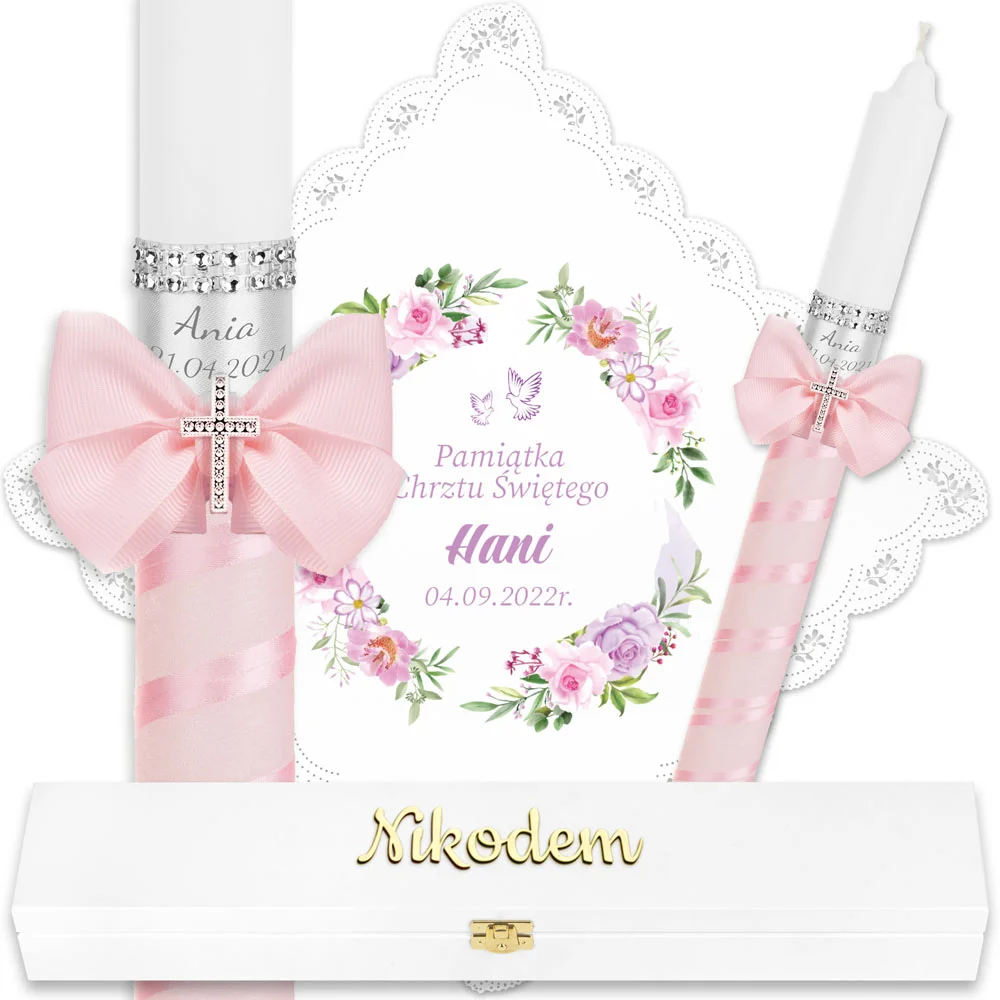 ✅ świeca na chrzest wraz z personalizacją (imieniem dziecka i datą chrztu),