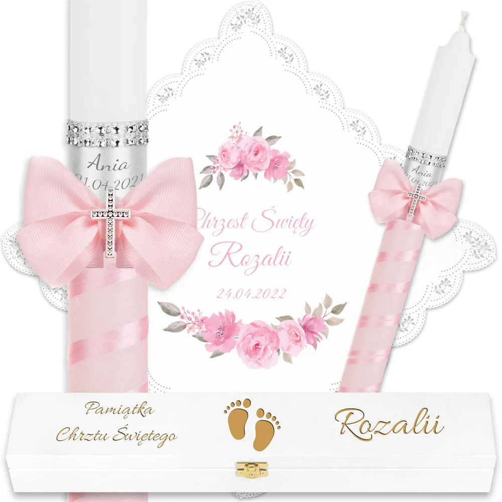 ✅ personalizacja (imię oraz data chrztu) na świecy oraz szatce.