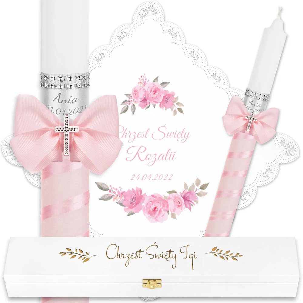 ✅ świeca na chrzest wraz z personalizacją (imieniem dziecka i datą chrztu),