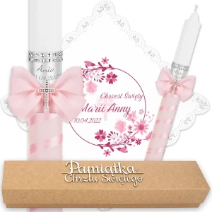 Ręcznie zdobiony zestaw Świeca oraz szatka do Chrztu Świętego.