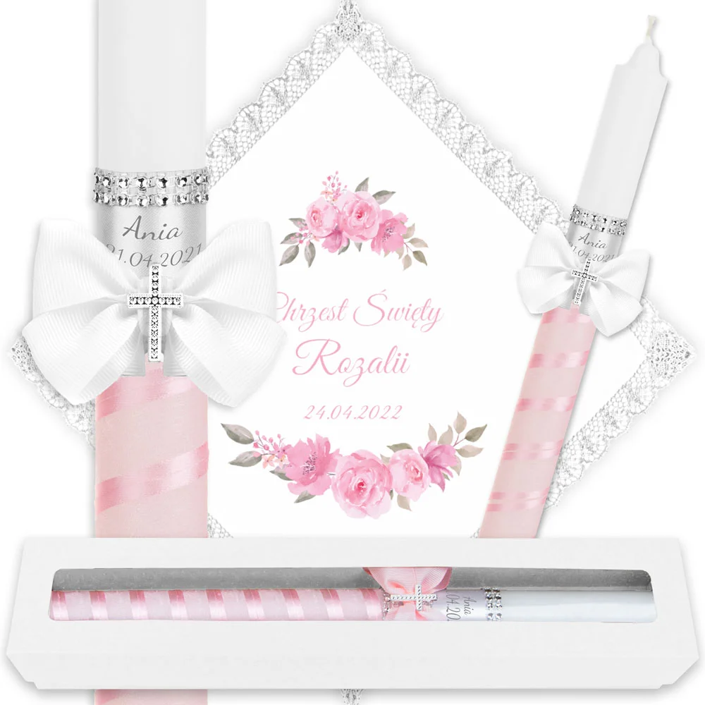 ✅ personalizacja (imię oraz data chrztu) na świecy oraz szatce.