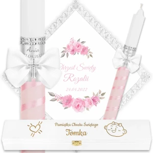 ✅ personalizacja (imię oraz data chrztu) na świecy oraz szatce.
