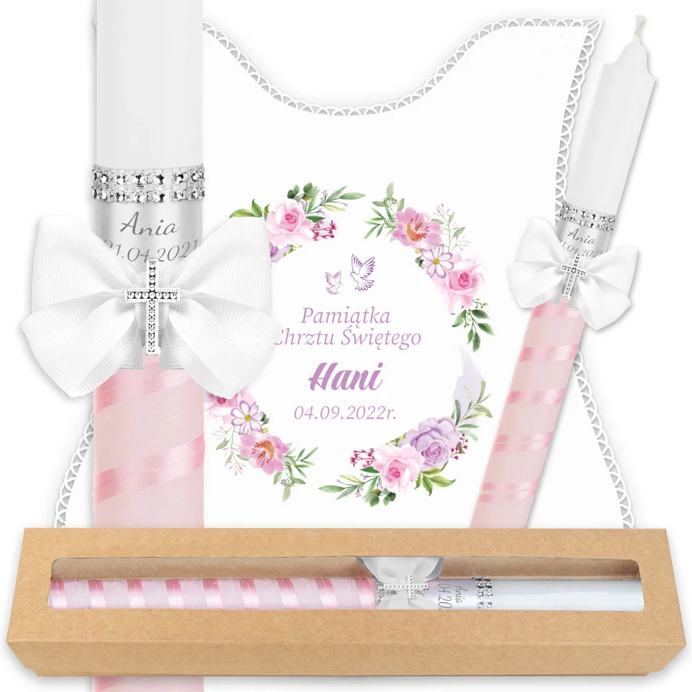 ✅ personalizacja (imię oraz data chrztu) na świecy oraz szatce.
