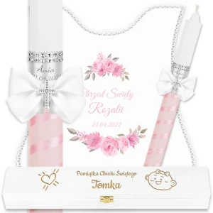✅ personalizacja (imię oraz data chrztu) na świecy oraz szatce.