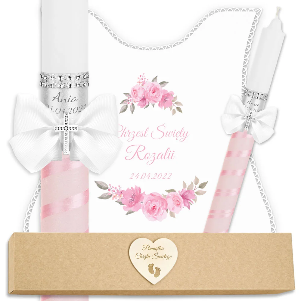 ✅ personalizacja (imię oraz data chrztu) na świecy oraz szatce.