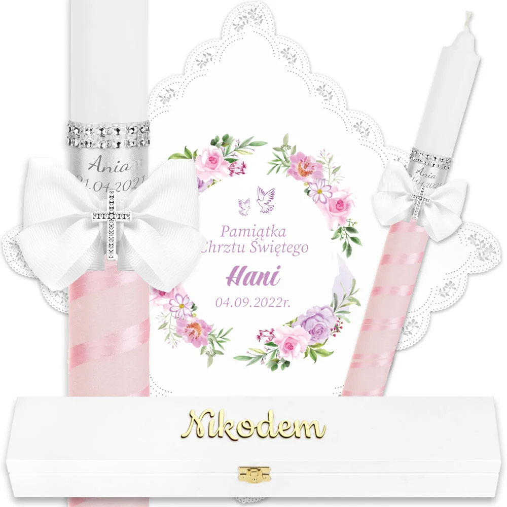✅ świeca na chrzest wraz z personalizacją (imieniem dziecka i datą chrztu),