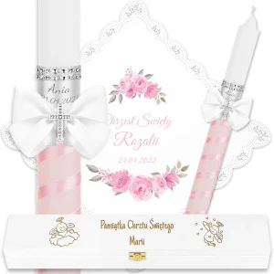✅ personalizacja (imię oraz data chrztu) na świecy oraz szatce.