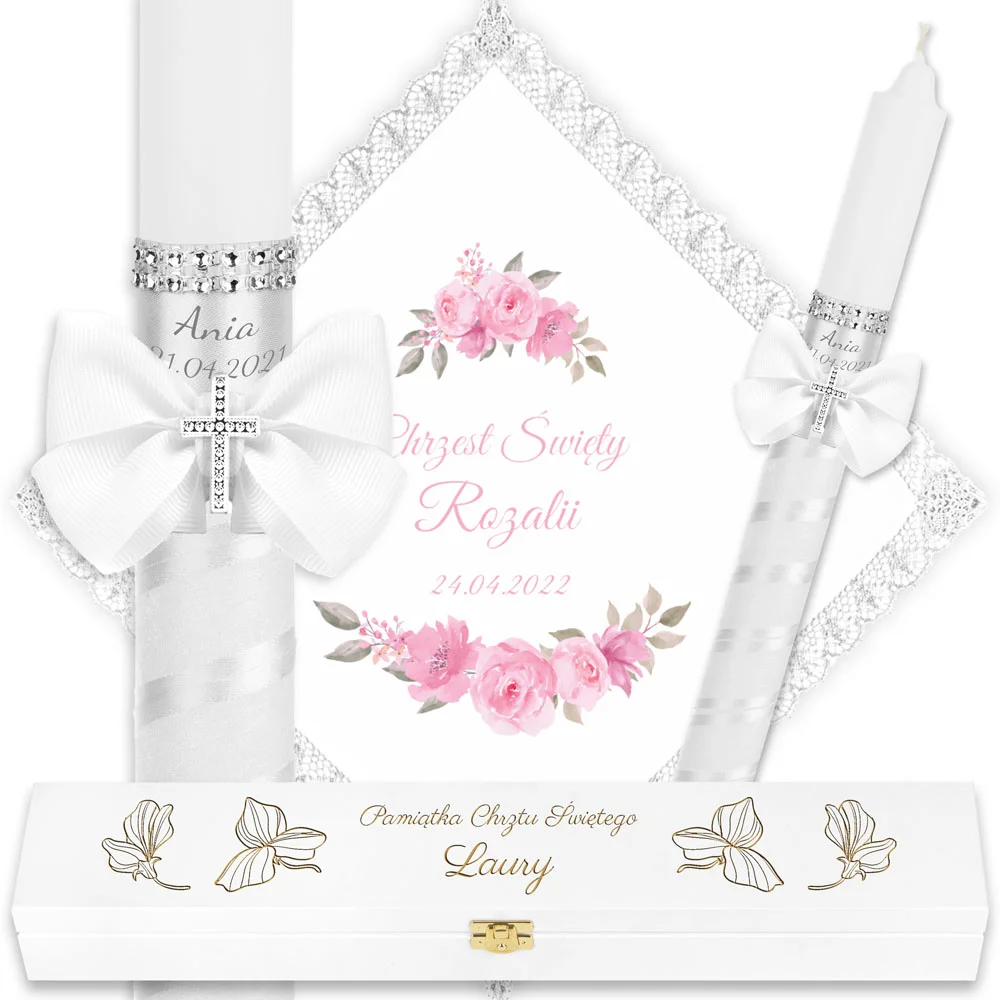 ✅ personalizacja (imię oraz data chrztu) na świecy oraz szatce.