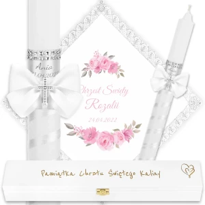 ✅ personalizacja (imię oraz data chrztu) na świecy oraz szatce.