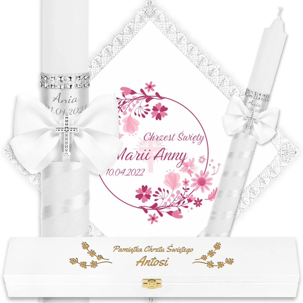 ✅ świeca na chrzest wraz z personalizacją (imieniem dziecka i datą chrztu),