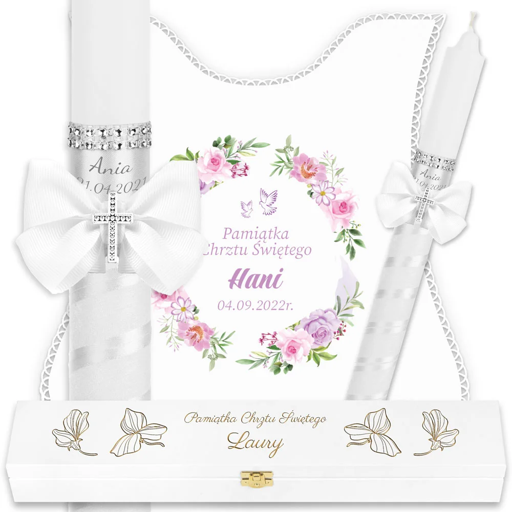 ✅ personalizacja (imię oraz data chrztu) na świecy oraz szatce.
