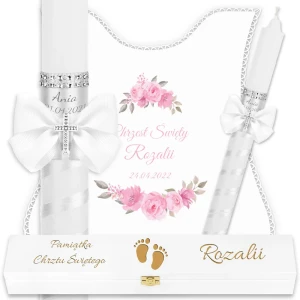 ✅ personalizacja (imię oraz data chrztu) na świecy oraz szatce.