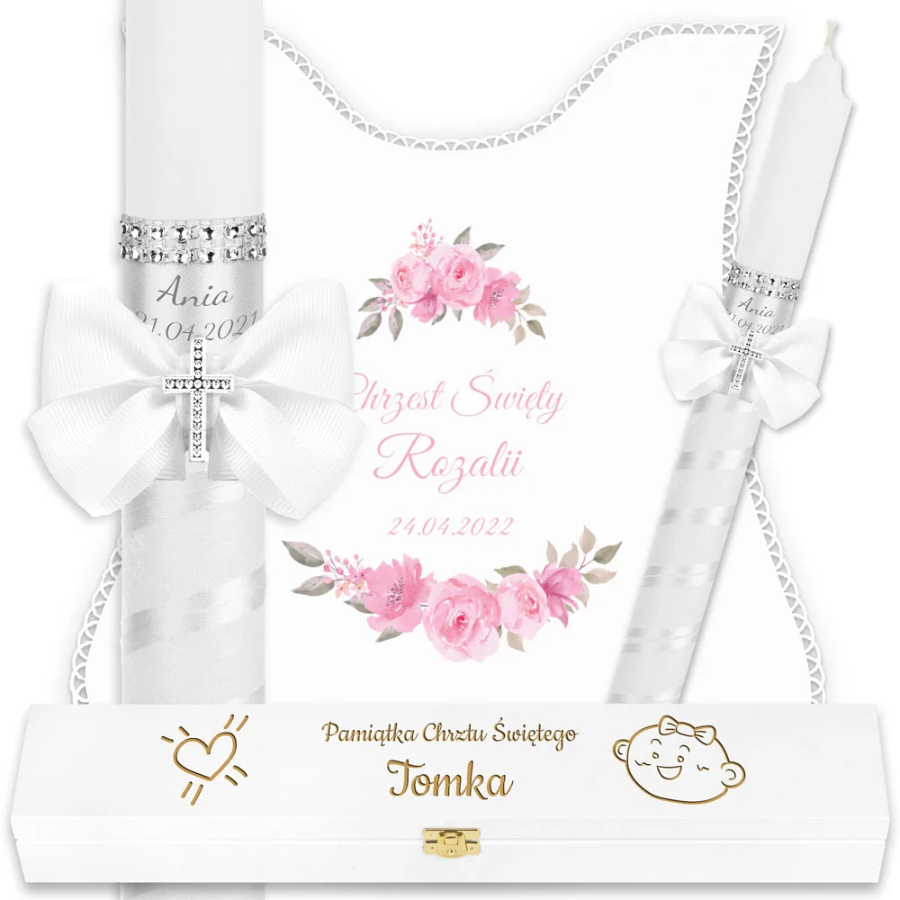 ✅ personalizacja (imię oraz data chrztu) na świecy oraz szatce.