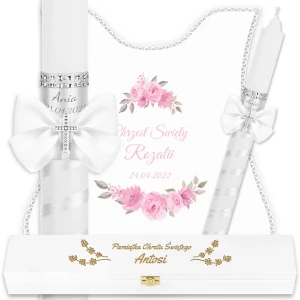 ✅ personalizacja (imię oraz data chrztu) na świecy oraz szatce.