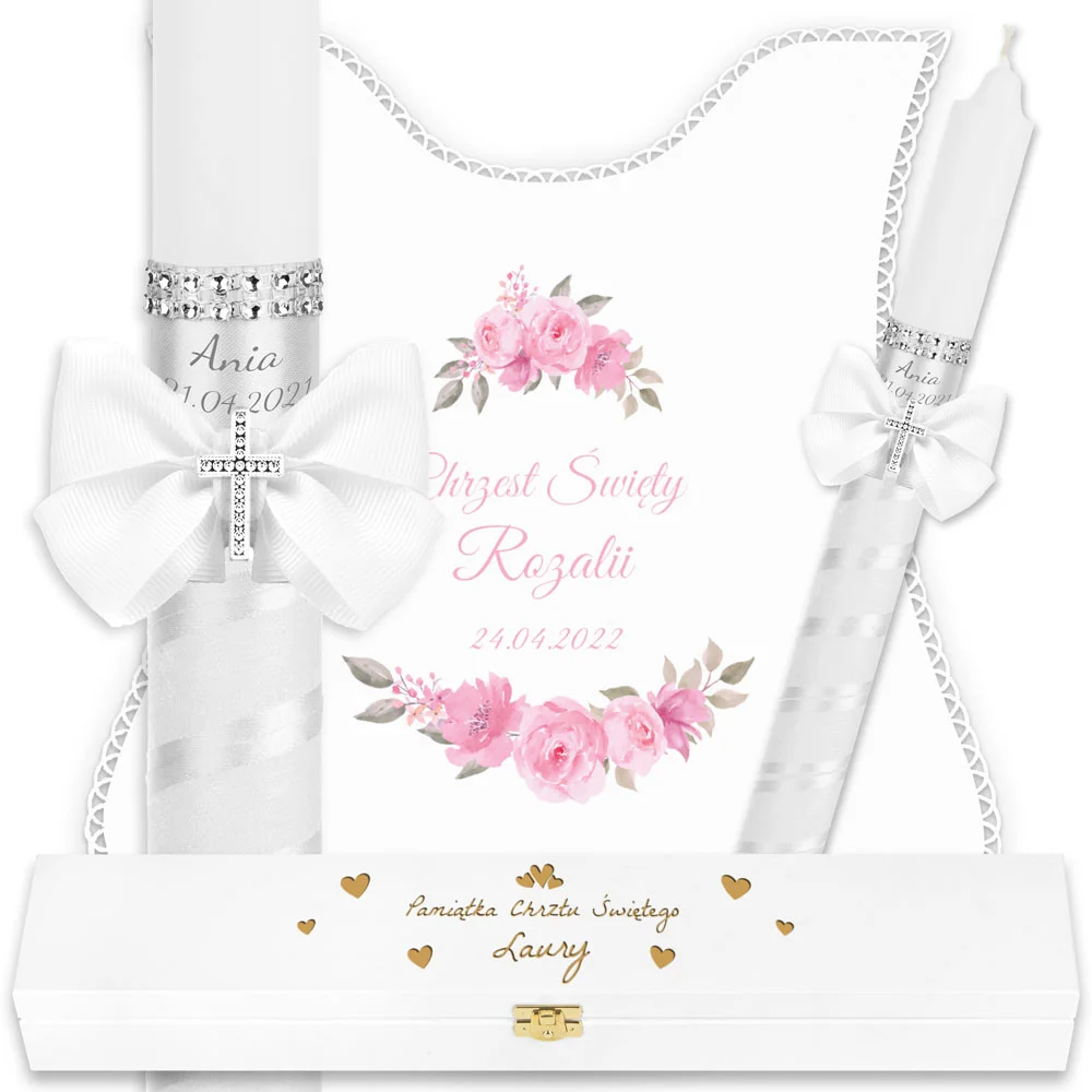 ✅ personalizacja (imię oraz data chrztu) na świecy oraz szatce.