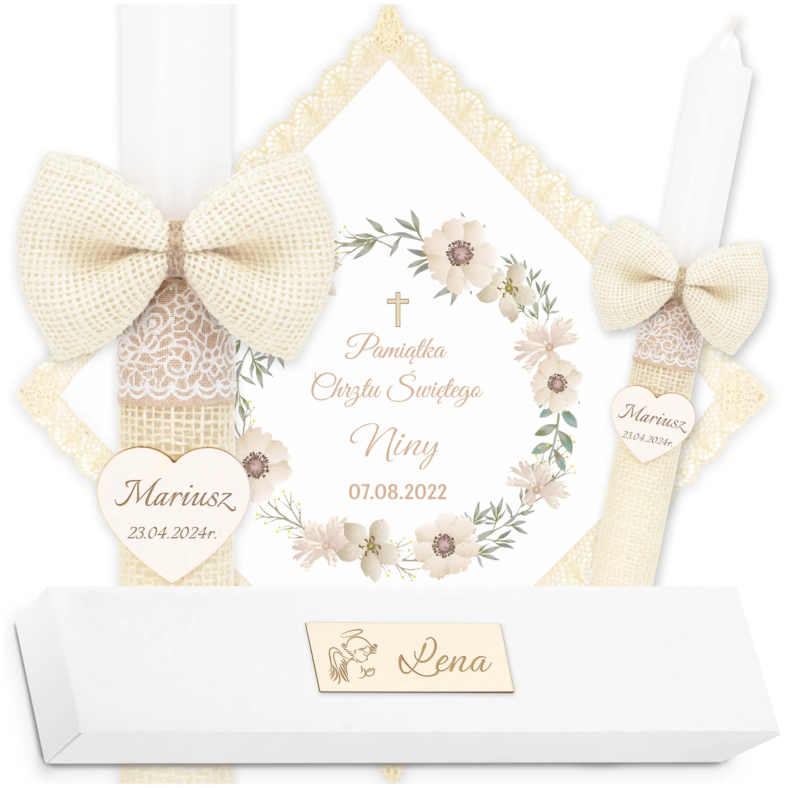 ✅ świeca na chrzest wraz z personalizacją (imieniem dziecka i datą chrztu),