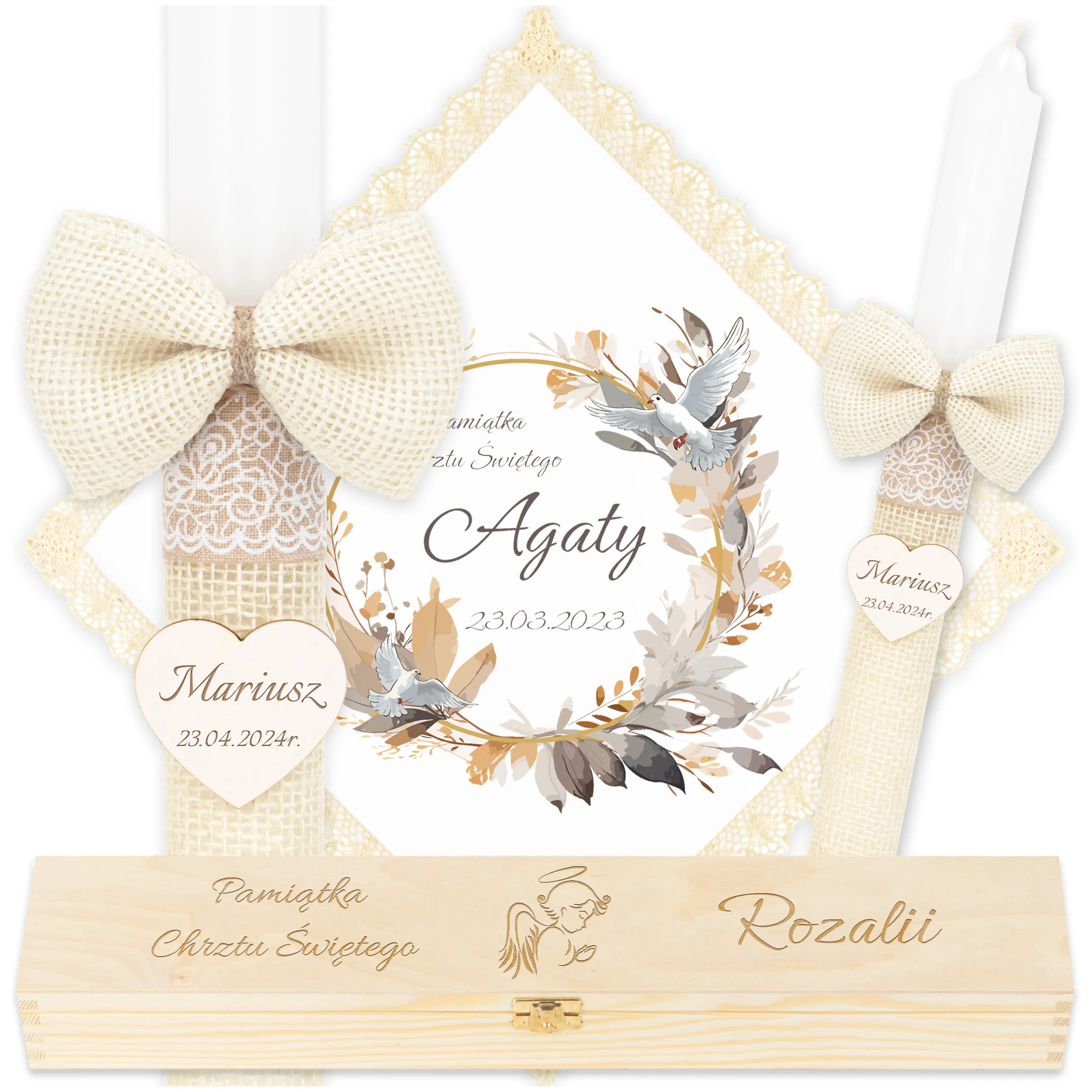 ✅ świeca na chrzest wraz z personalizacją (imieniem dziecka i datą chrztu),