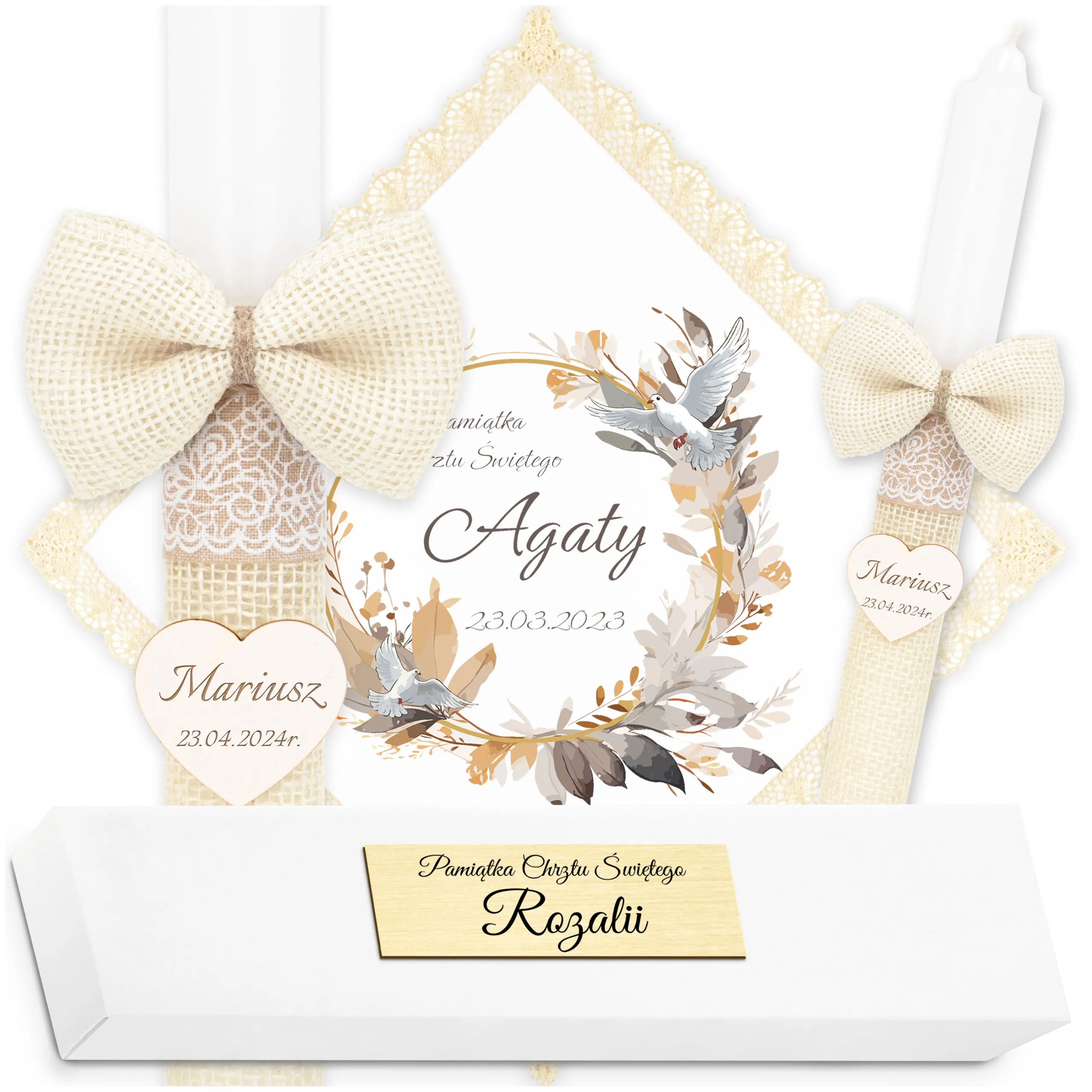 ✅ świeca na chrzest wraz z personalizacją (imieniem dziecka i datą chrztu),