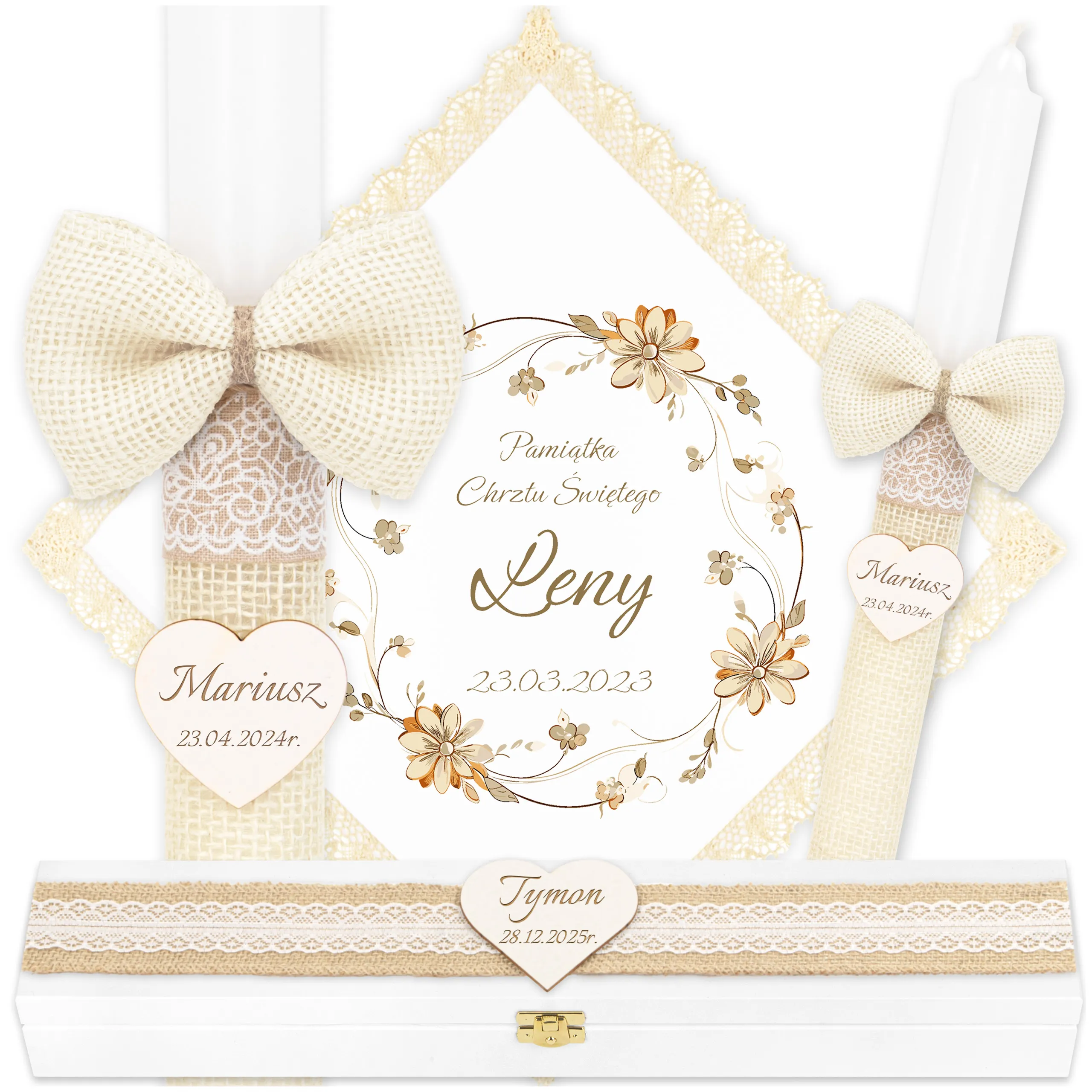 Świeca, Szatka i Pudełko do Chrztu C4S33P12