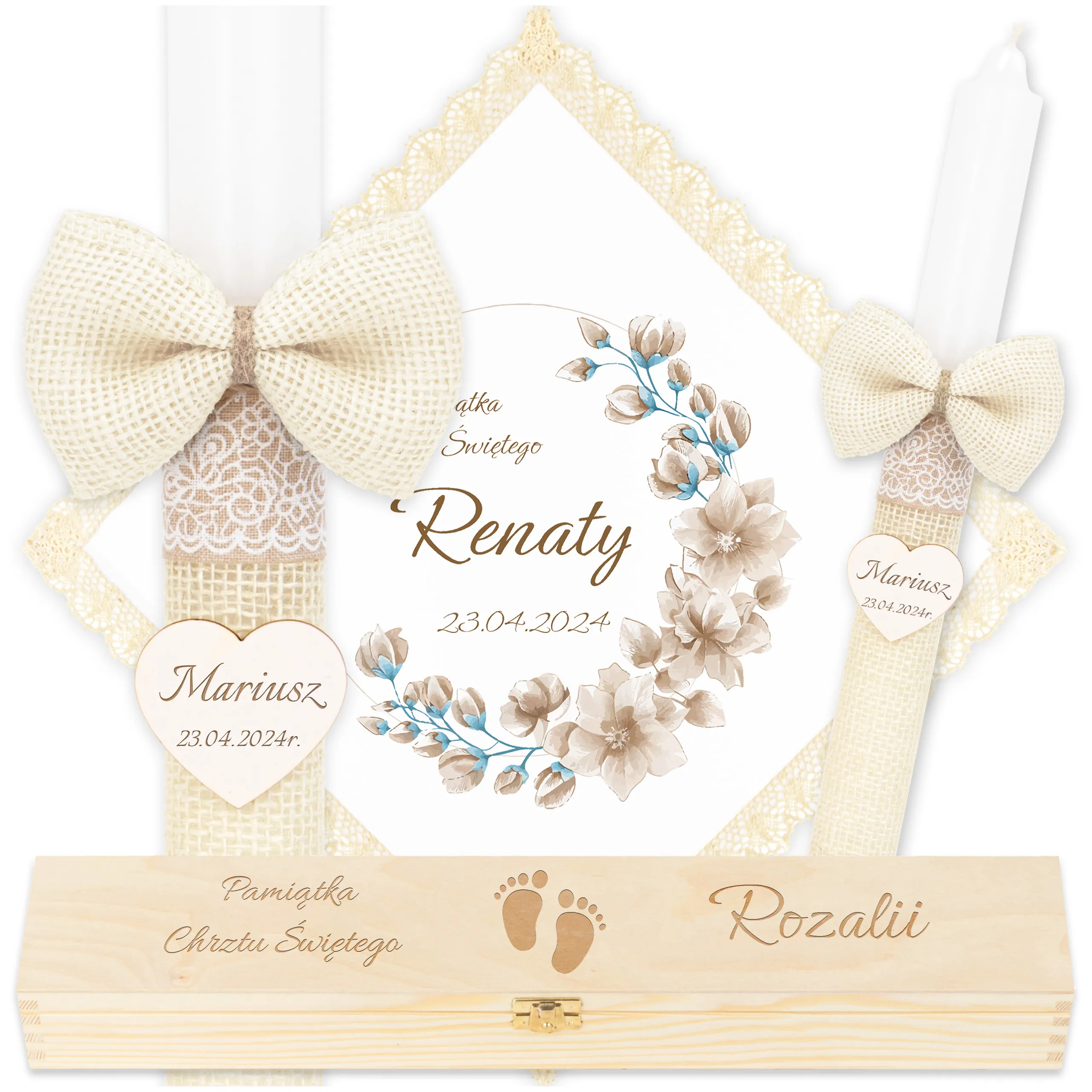 ✅ świeca na chrzest wraz z personalizacją (imieniem dziecka i datą chrztu),