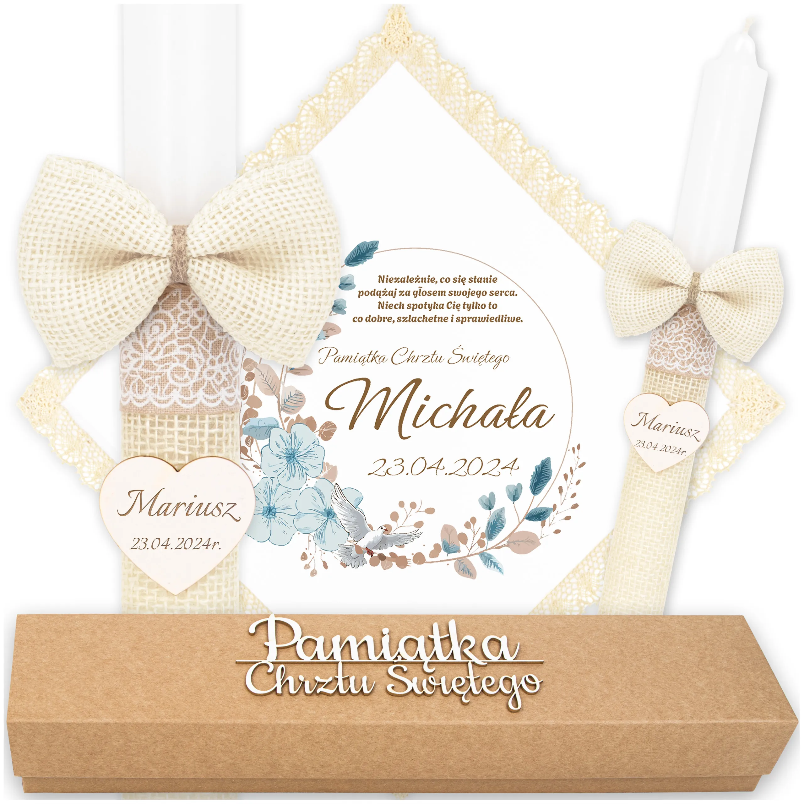 ✅ świeca na chrzest wraz z personalizacją (imieniem dziecka i datą chrztu),