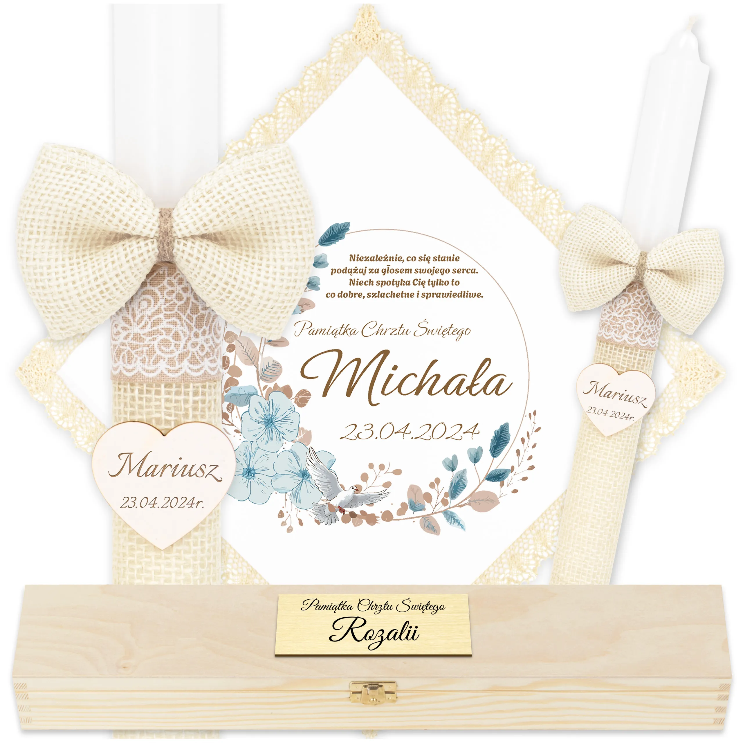 Świeca, Szatka i Pudełko do Chrztu C4S52P18