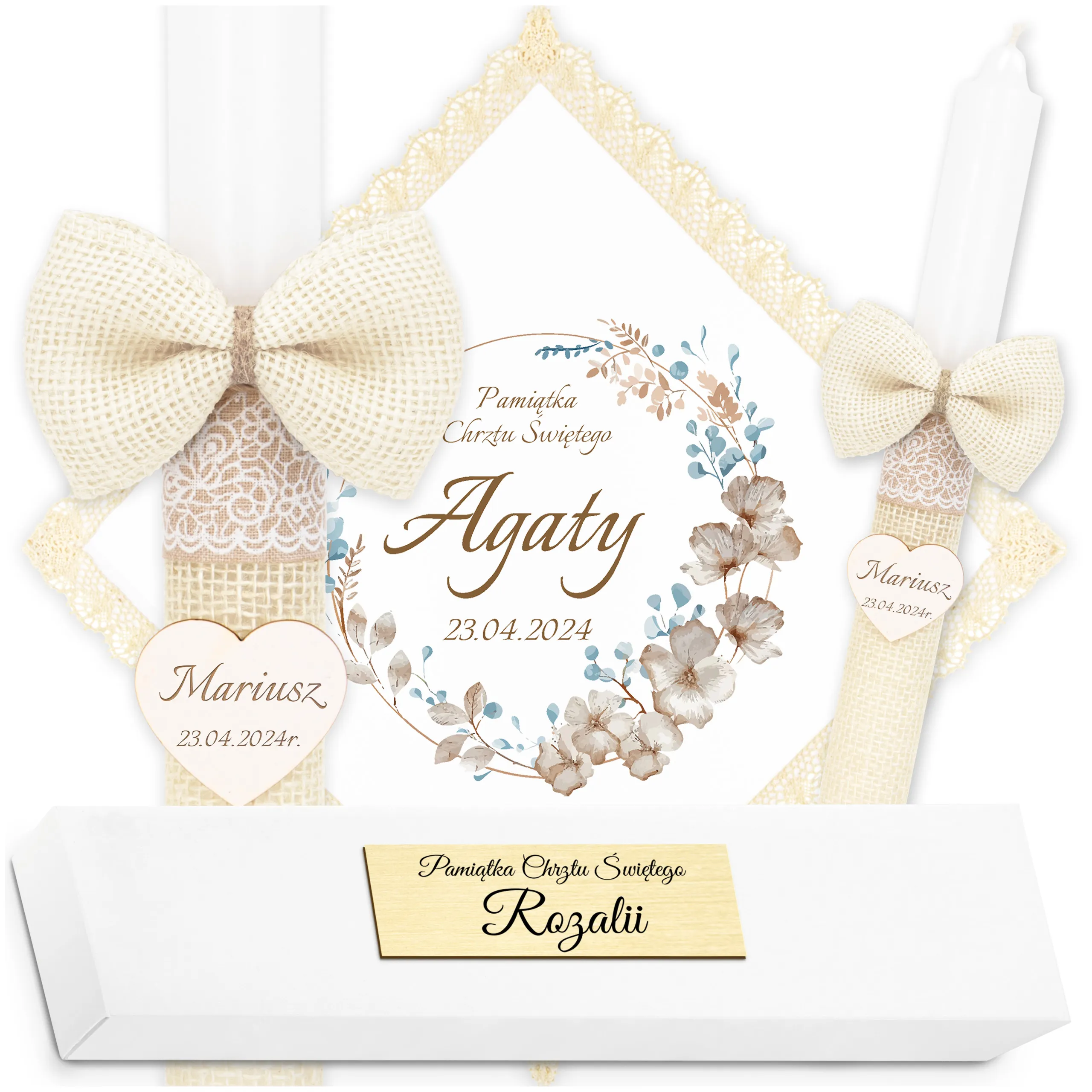 ✅ świeca na chrzest wraz z personalizacją (imieniem dziecka i datą chrztu),