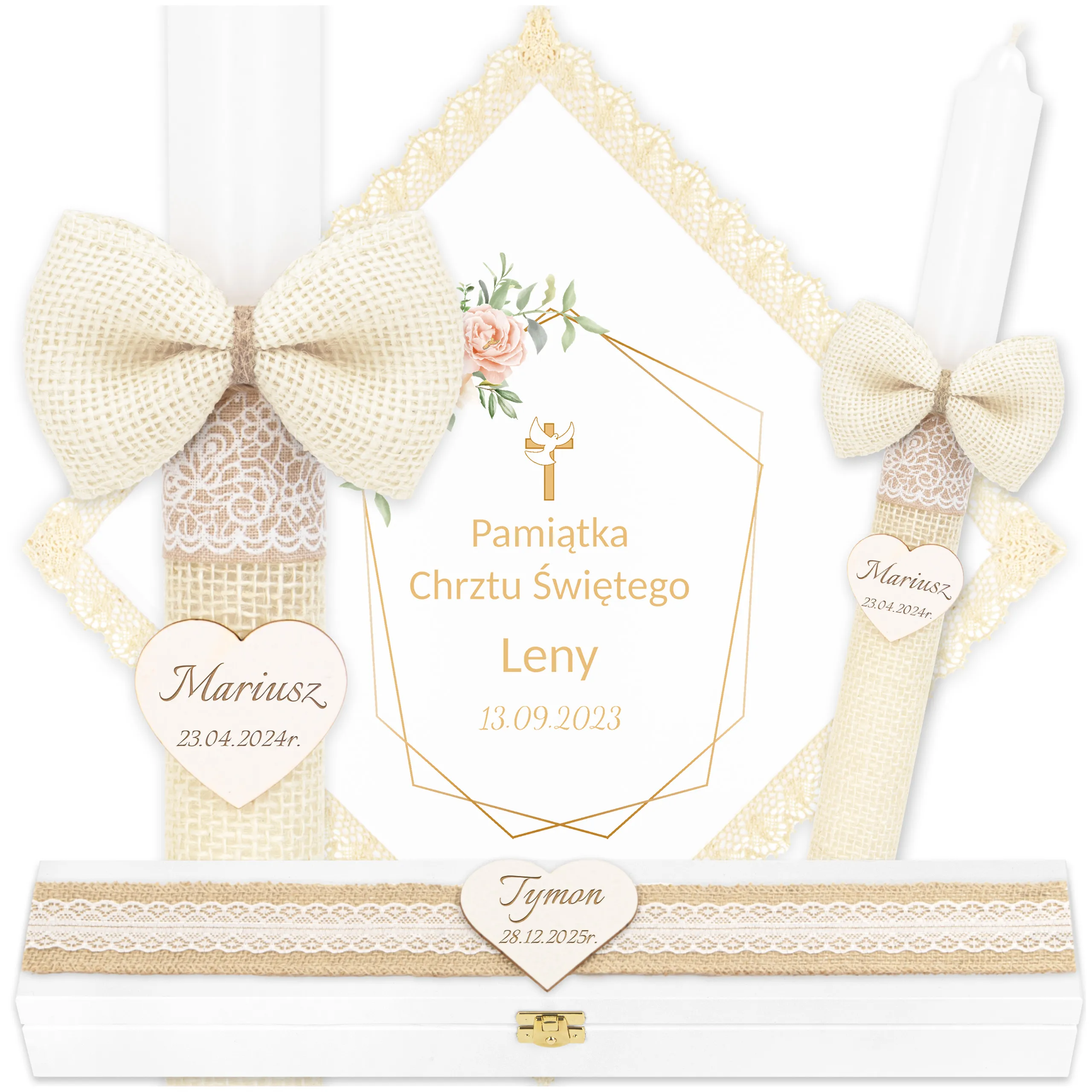 Świeca, Szatka i Pudełko do Chrztu C4S6P12