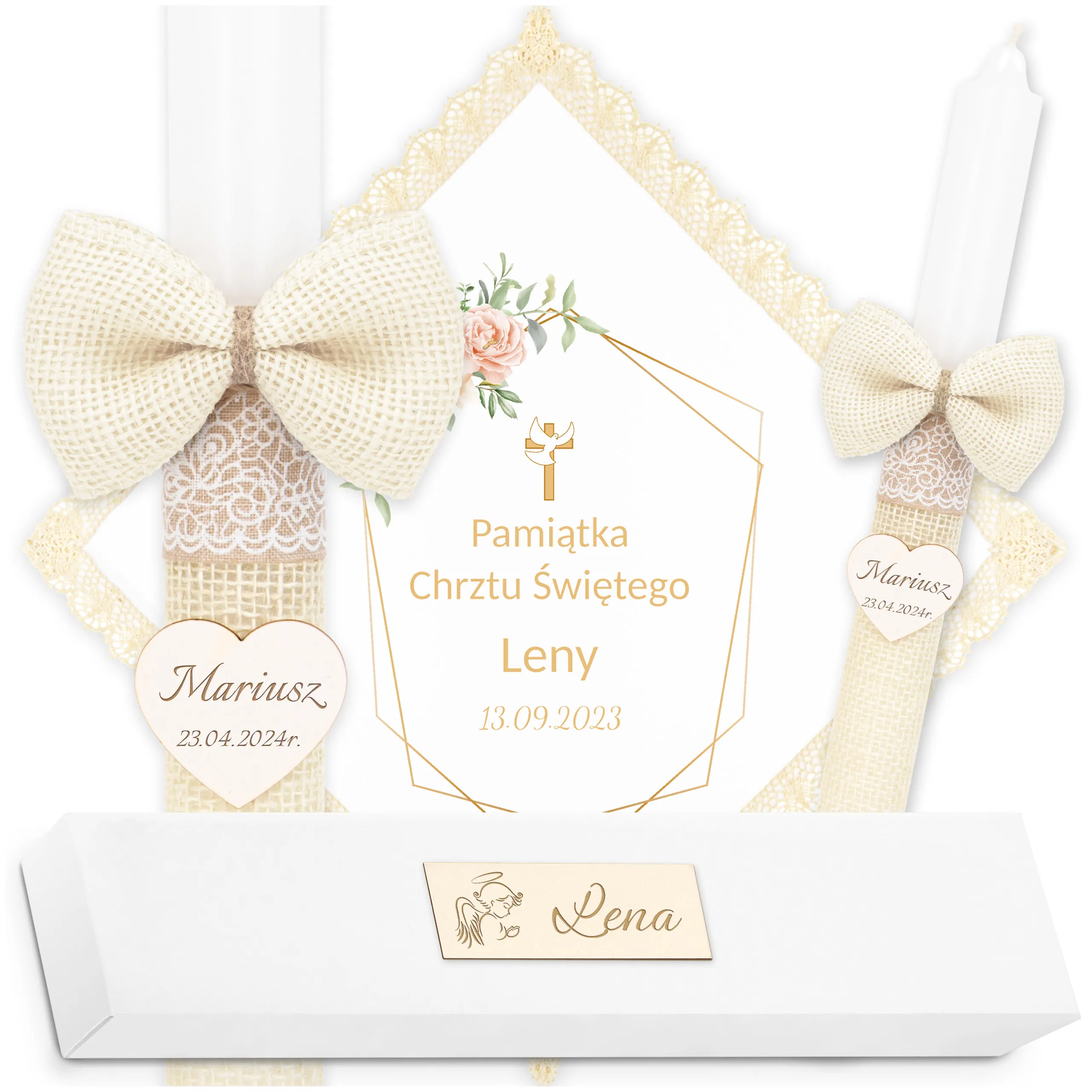 ✅ świeca na chrzest wraz z personalizacją (imieniem dziecka i datą chrztu),