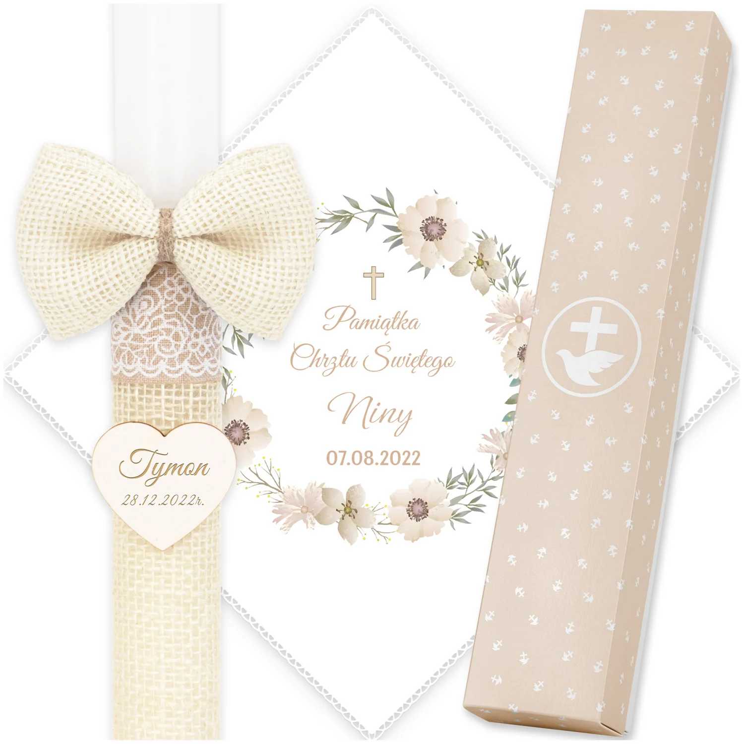 ✅ świeca na chrzest wraz z personalizacją (imieniem dziecka i datą chrztu),