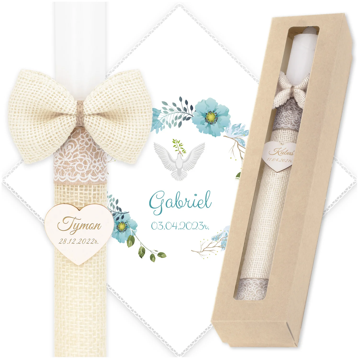 ✅ świeca na chrzest wraz z personalizacją (imieniem dziecka i datą chrztu),