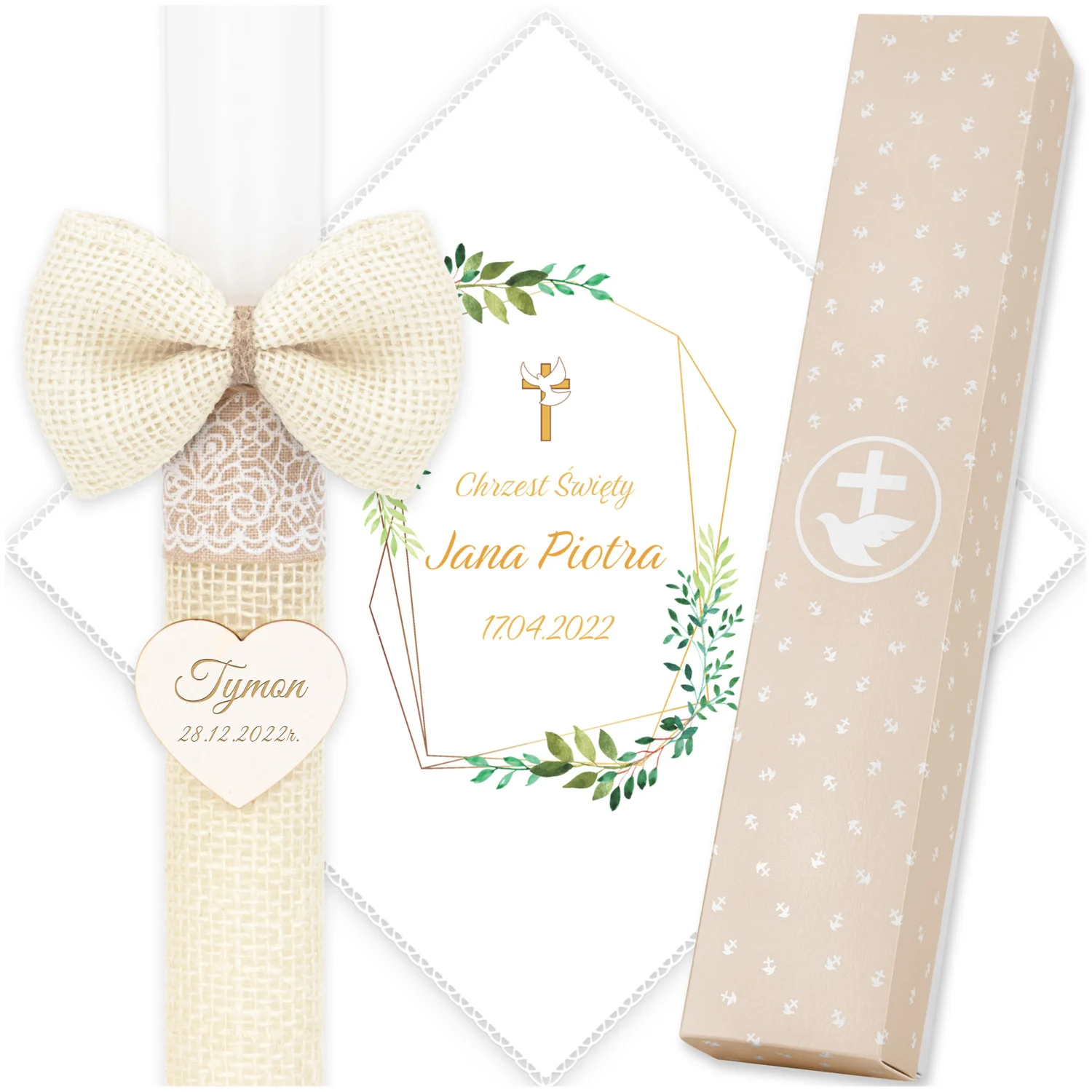✅ świeca na chrzest wraz z personalizacją (imieniem dziecka i datą chrztu),