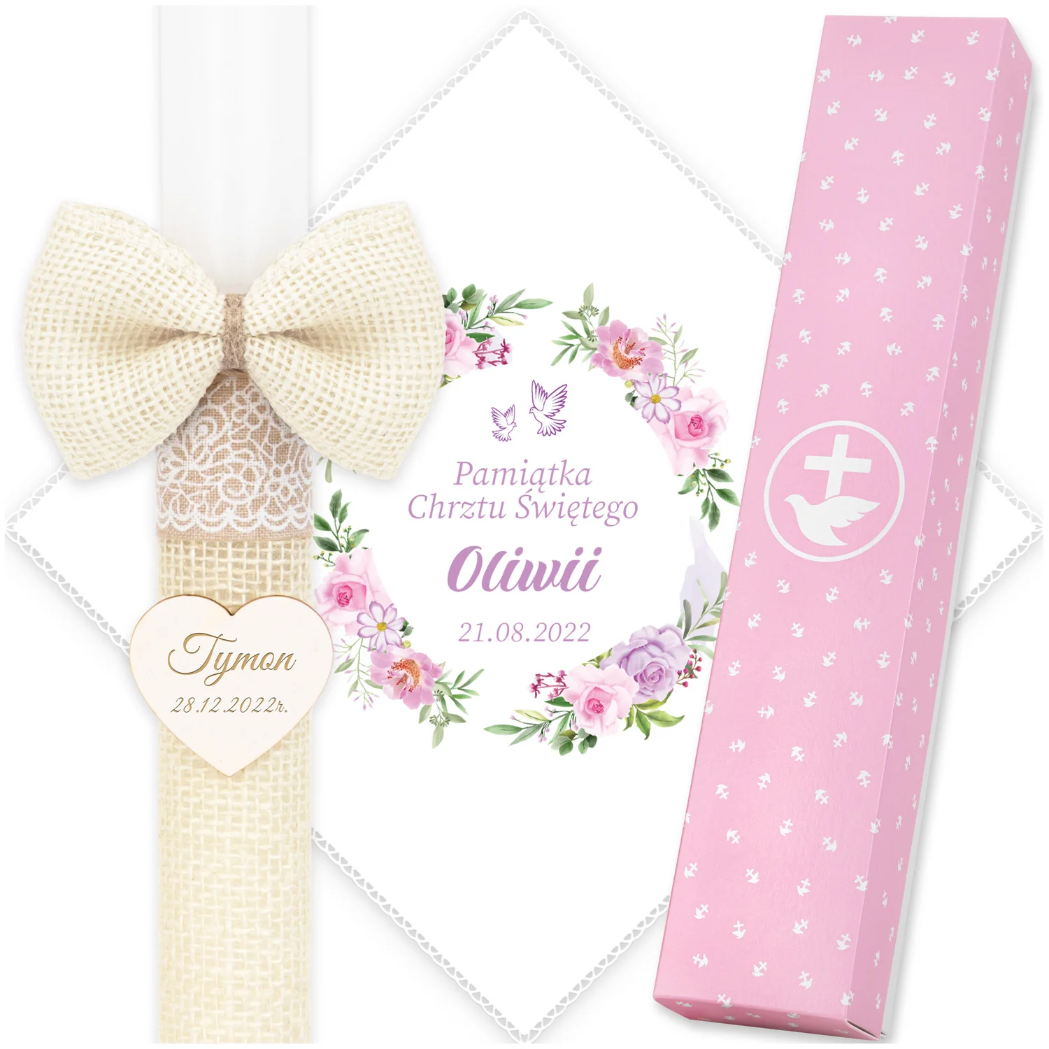 ✅ świeca na chrzest wraz z personalizacją (imieniem dziecka i datą chrztu),