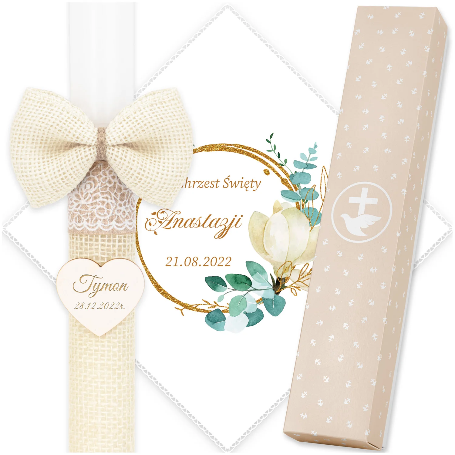 ✅ świeca na chrzest wraz z personalizacją (imieniem dziecka i datą chrztu),