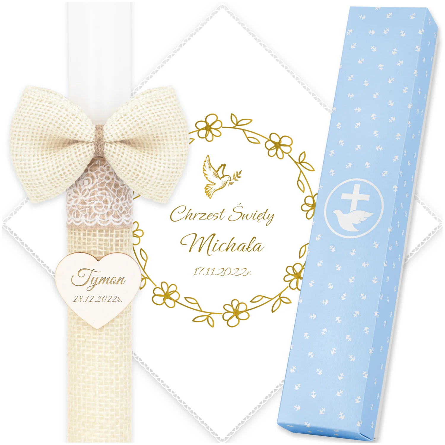 ✅ świeca na chrzest wraz z personalizacją (imieniem dziecka i datą chrztu),