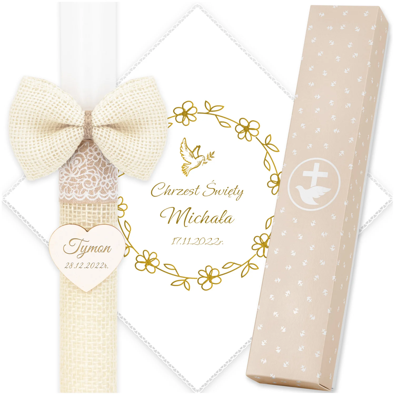 ✅ świeca na chrzest wraz z personalizacją (imieniem dziecka i datą chrztu),