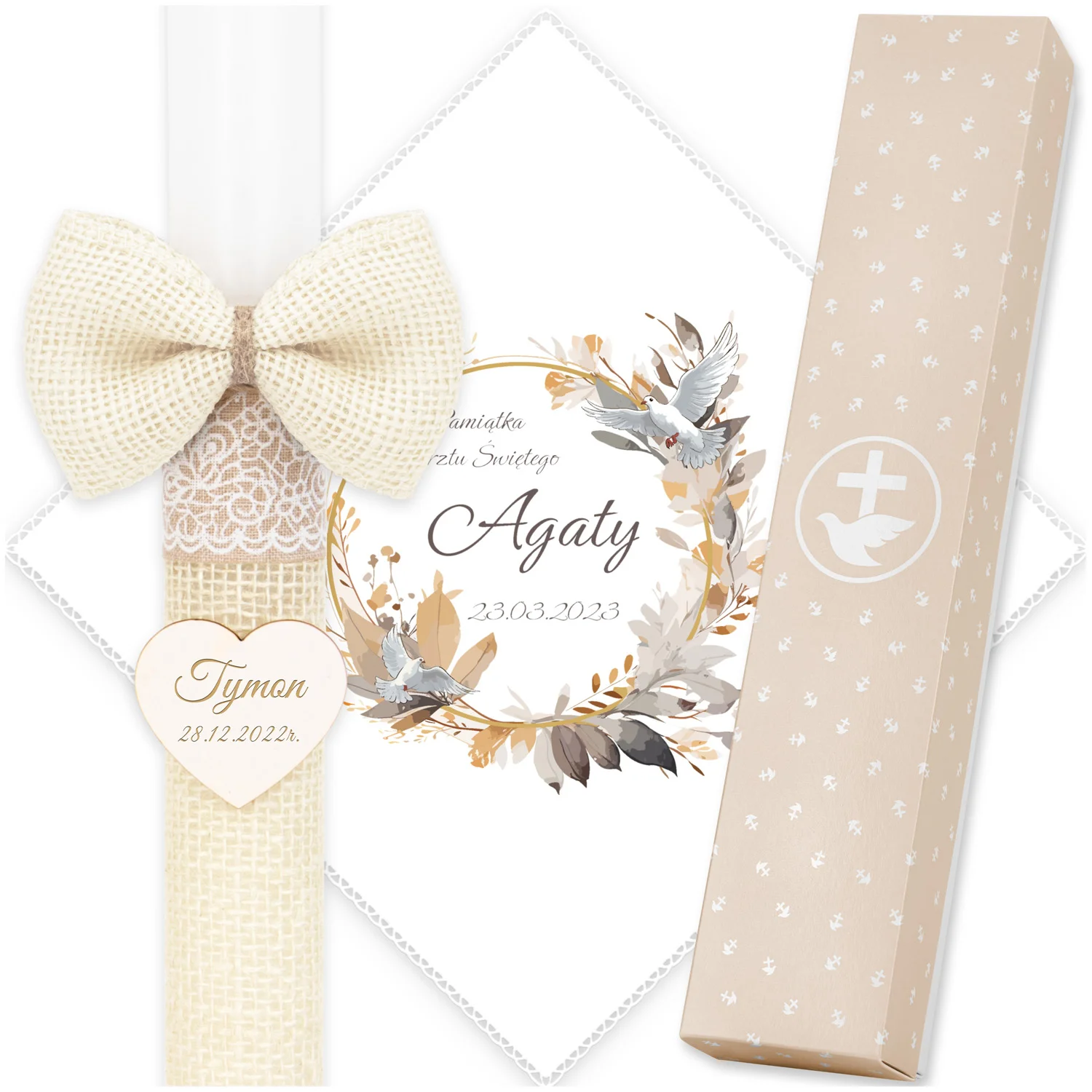✅ świeca na chrzest wraz z personalizacją (imieniem dziecka i datą chrztu),