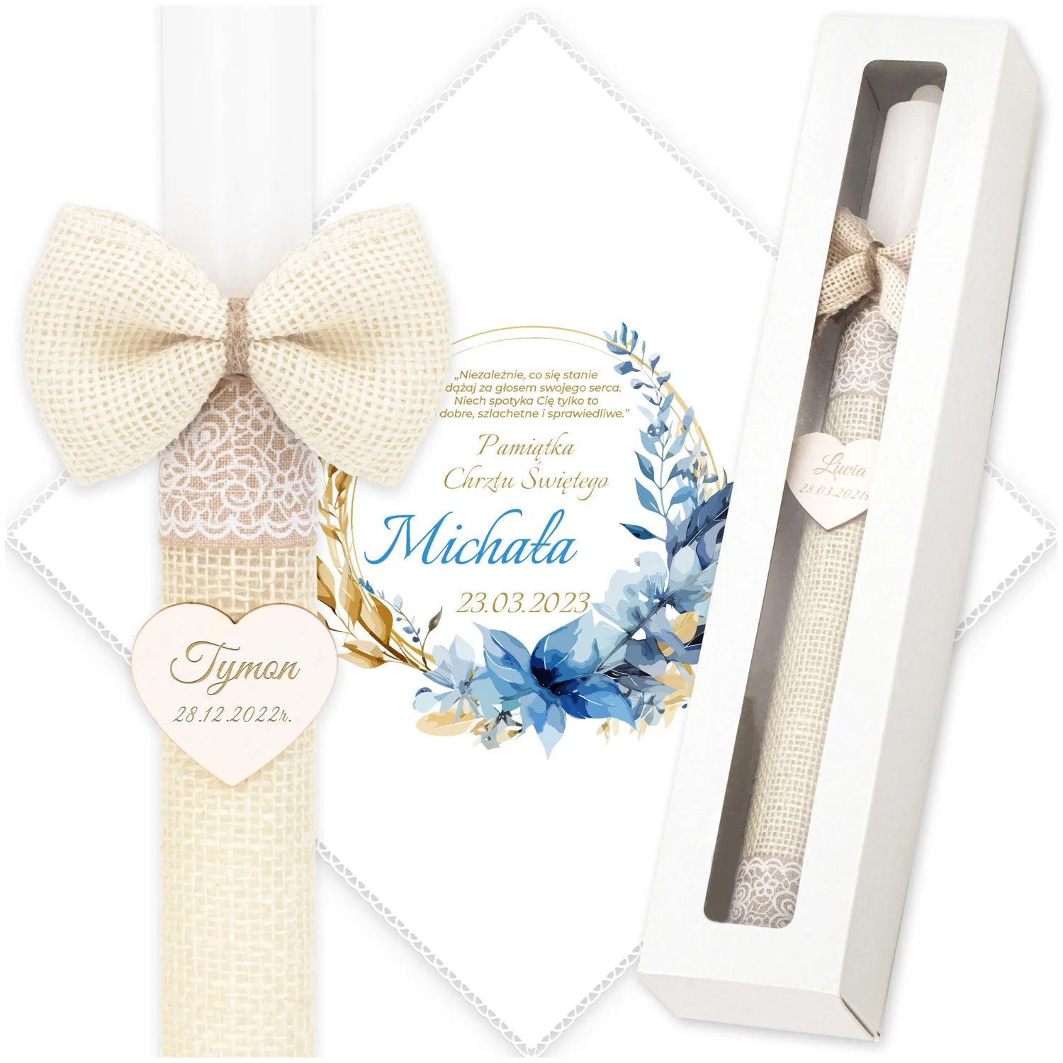 ✅ świeca na chrzest wraz z personalizacją (imieniem dziecka i datą chrztu),