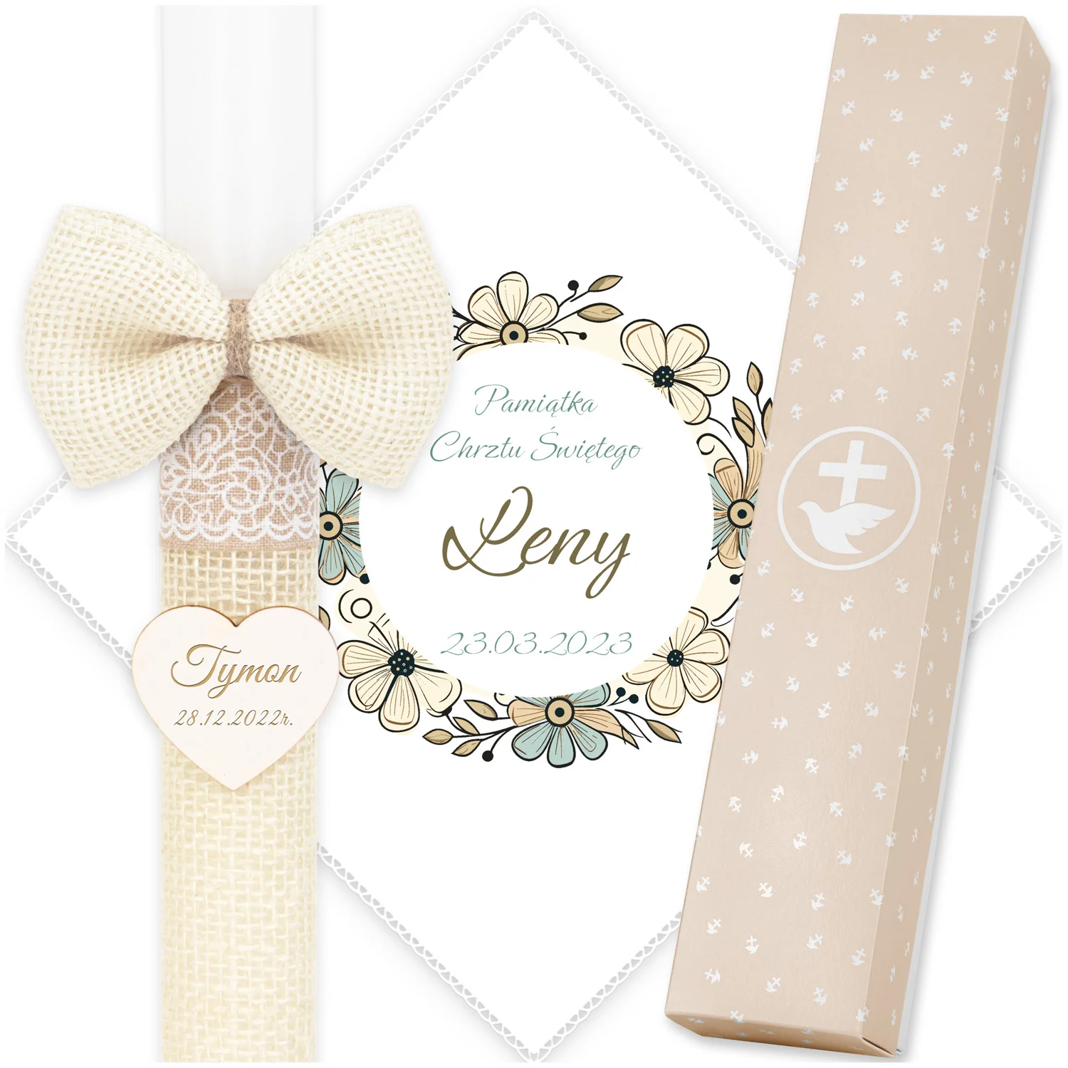 ✅ świeca na chrzest wraz z personalizacją (imieniem dziecka i datą chrztu),