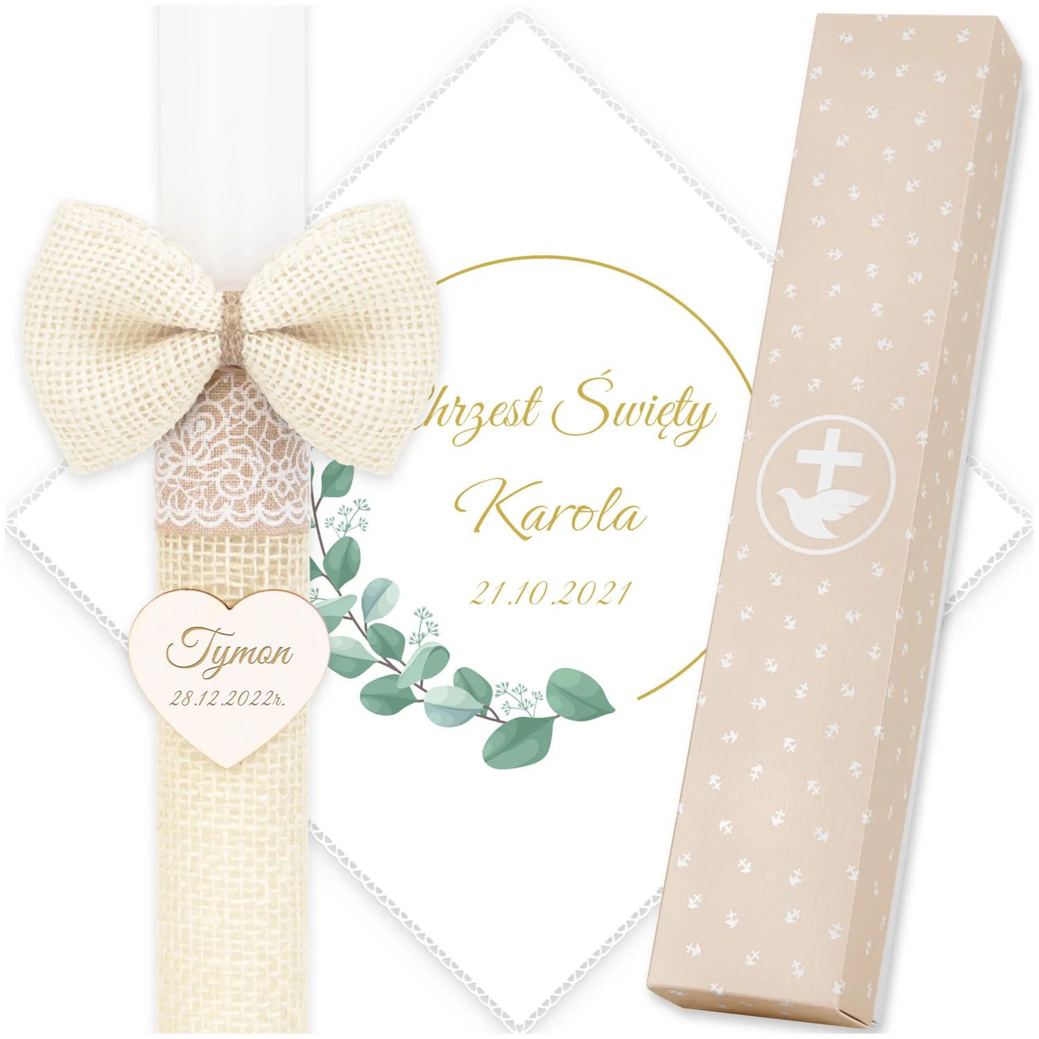 ✅ świeca na chrzest wraz z personalizacją (imieniem dziecka i datą chrztu),